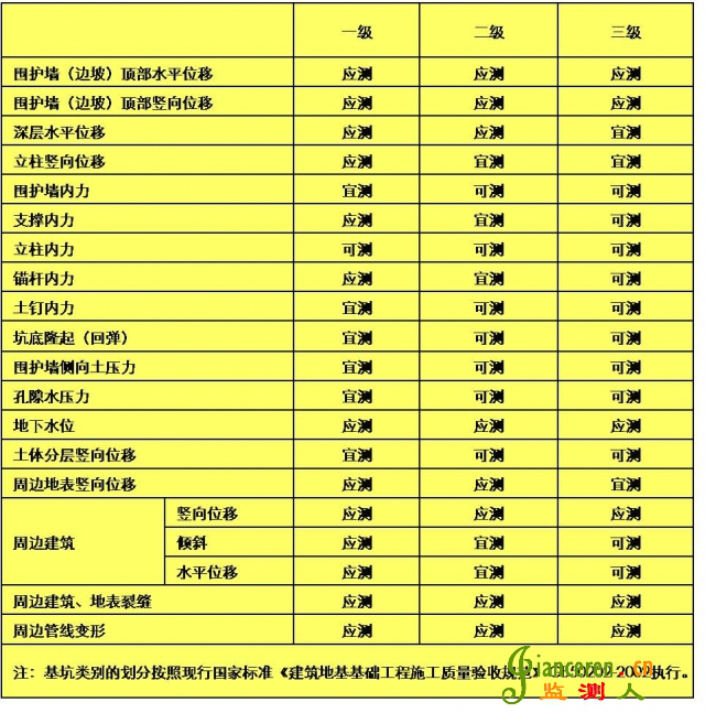 應(yīng)針對(duì)監(jiān)測對(duì)象的關(guān)鍵部位,做到重點(diǎn)觀測、項(xiàng)目配套并形成有效的、完整的監(jiān)測系統(tǒng)